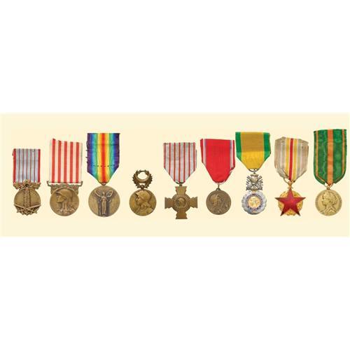 Lot of 9 medals including: Military Medal of the Third Republic, silver; Combatants Cross of 1914;