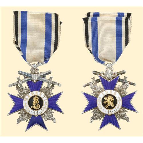 Cross of the 4th Class with swords (1905-1918). Breast Badge, silver, medallions gilt, both sides enamelled, superimposed cipher "L" and lion, original mounted swords, with original suspension ring (marked "900" on reverse). Minimal signs of wear.