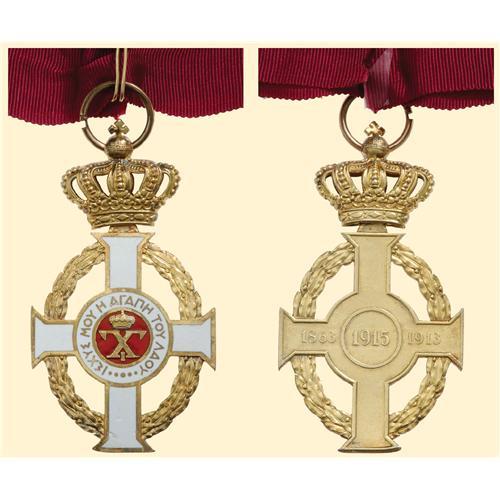 Commander`s Cross, 3rd Class, for civil; neck badge, silver gilt, obverse partially enamelled, reverse blank, with years "1863 - 1915 - 1913", movable crown and suspension ring, with ribbon. Fine quality with enamel damage on the lower arm.