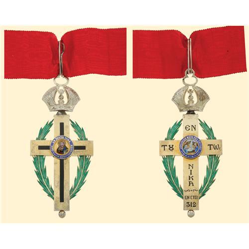 Commander`s Cross, model 1925-1935, silver-gilt, partially enamelled, French hallmarked, with original suspension loop and ribbon. Some repair at the fixing device of the crown. Very fine enamels quality.
