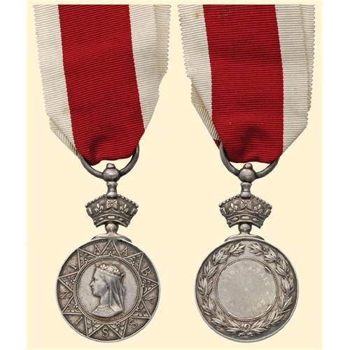 Breast Badge in silver. Queen Victoria profile. With swiveling suspension. With short old ribbon.