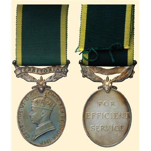 Breast Badge with ribbon. Bar "Territorial" G VI to "6287424 Pte W.C. Castle Buffs". Toned.