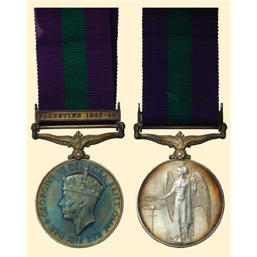 Breast Badge G VI with bar "Palestine 1945-48" to "MAUR/18007636 Pte.L.Cornet.R.P.C.". Toned, in