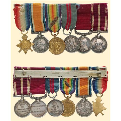 Group of 6 mounted miniatures: 1914-15 Star, WW I War Medal, Interallied Victory Medal with MID,