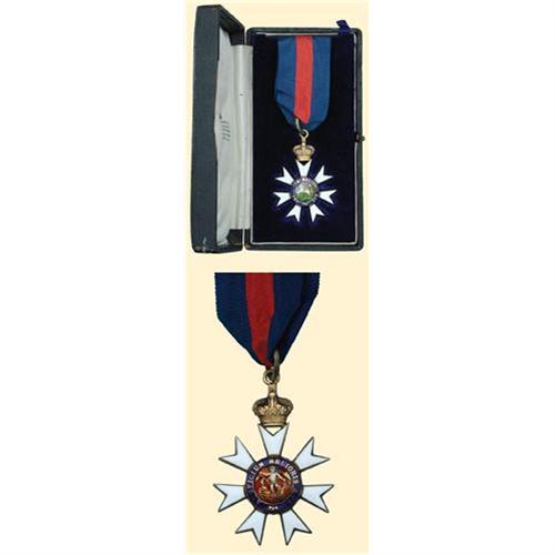 painted. With suspension ring and long original ribbon. In original case of issue by Garrad & Co Ltd