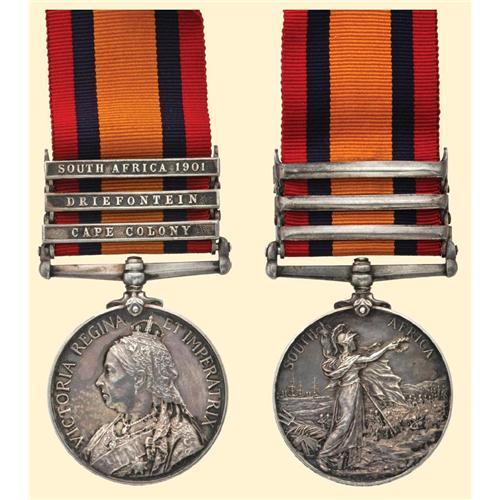 Breast Badge in silver with ribbon, 3 bars on medal: "Driefontein-Cape Colony-South Africa 1901" to