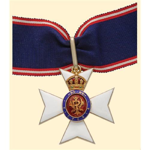 Commander's Cross (C.V.O.), neck badge in silver-gilt, obverse enamelled, reverse blank with number