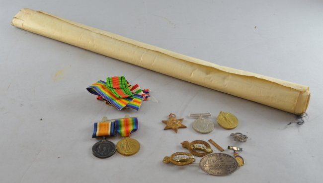 Medal Group PTE J R Gilhespy north'd Fus Great war Medal and 1914-1918 medal, three second world war medals and four maps,