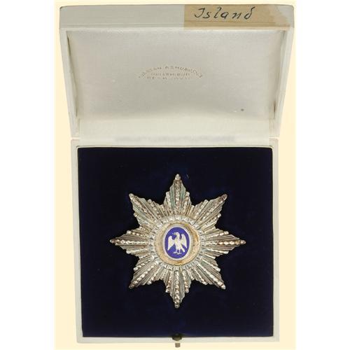 Breast Star, 2nd Class, silver gilt, enamelled centre, hallmarked "925.S", maker`s mark "K.A", in case of issue by Kjartan Asmundsson of Reykjavik. Very rare!