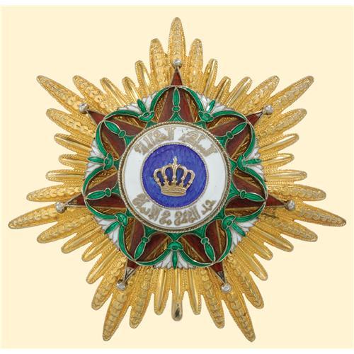 Breast Star 1st or 2nd Class, 1st type, silver gilt, superimposed parts enamelled, large pin and two sides hooks. Some enamel damage. Rare!