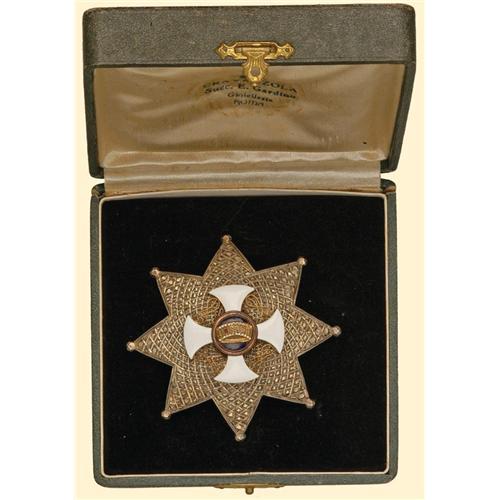 Grand Officer Star in silver with silver-gilt cross. In green leather case of issue with cypher of V.E. on