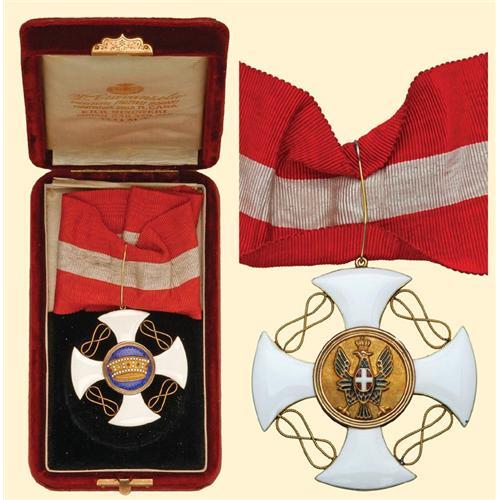 Commander's Cross in gold. In velvet case of issue by Cravanzola Succ Borani. Cypher of King V.E.