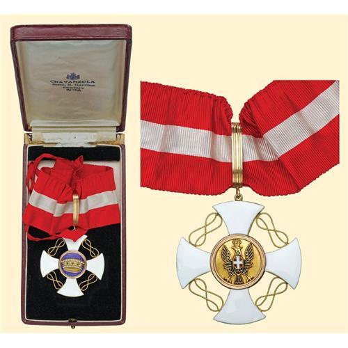 Commander's Cross in gold. In red leather case of issue by Cravanzola with cipher of King V.E. on the
