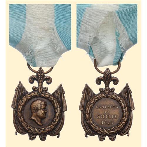SICILIA 1849", with suspension ring and later ribbon. King Ferdinand II from Sicily ruled from 1830-