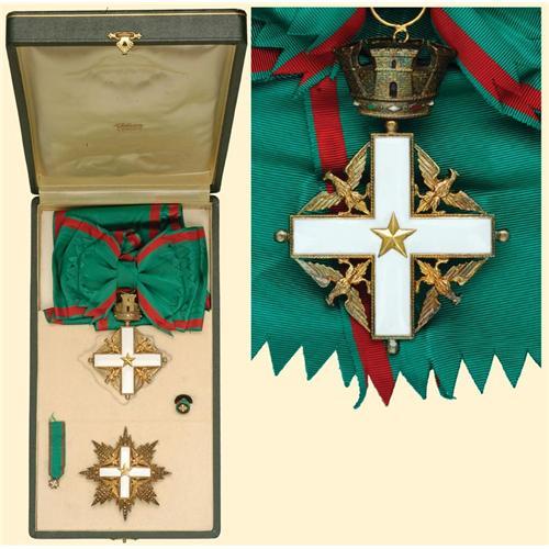 Grand Cross set, 1st type, complete in case of issue by Johnson Milano. Sash badge & breast star in