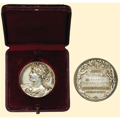 Medal in silver for greetings deeds during WW I to "Soldato Invernizzi Pietro" diameter 51 mm. In