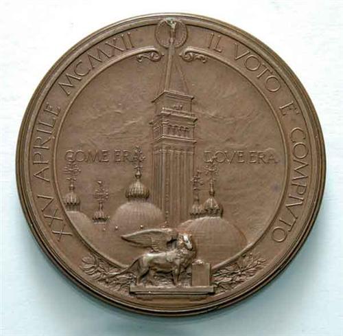 Medal - Italy - 1912 - Cu - Italia - Venezia 1912 - Medaglia celebrativa della ricostruzione del capanile di San Marco - - - gr. 30,78 - diametro mm. 43