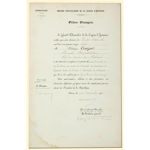 Permission Document for the Grand Cross. Permission document of the French Grand Office of the