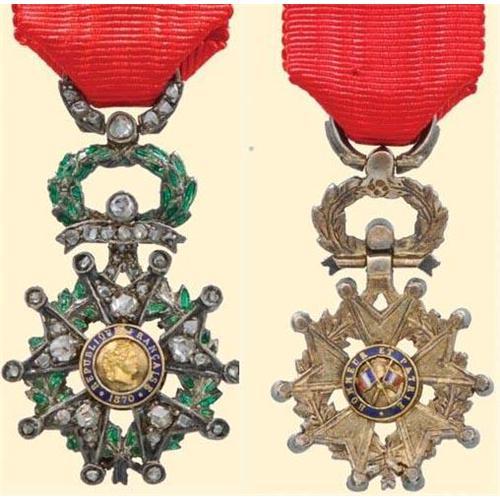 Miniature Knight's Cross of the Third Republic (1870 - 1947); luxury model, silver, tripartite gold