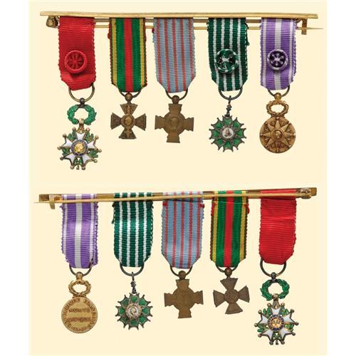 Miniature bar of Five; Legion of Honour - Officer's Cross of the Fourth Republic, silver gilt and enamels,
