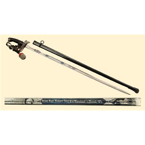 with maker's mark "W. K.&C.", both sides etched and blued "Ulan. Rgt. Kaiser Alex. II. Russland