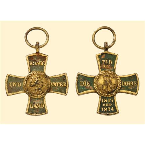 Military Commemorative Cross 1813-1814 for officers and soldiers. Bronze gilt, both sides partially