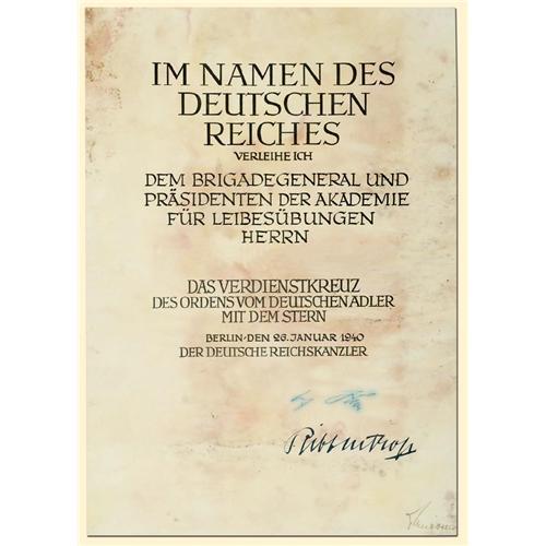 mit dem Stern) for a Romanian Brigade general, with original signature of Adolf Hitler, printed signature