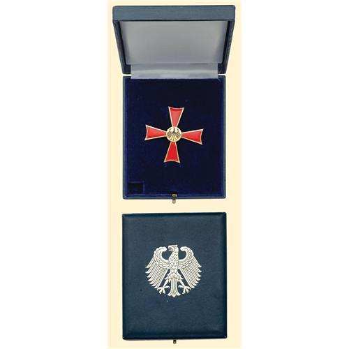 Cross of Merit 1st class. Breast badge with pin back; bronze gilt, averse enamelled, centre medallion