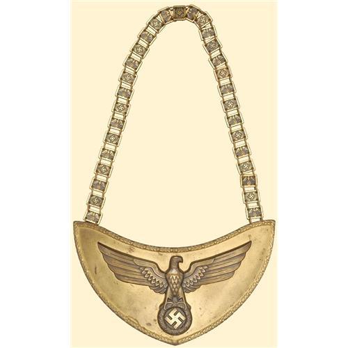 Garget of a flag bearer of the National Socialist Party. Large garget, brass gilt and toned, superimposed