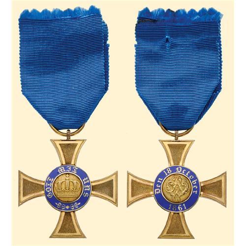 Cross of the 4th class 2nd type, breast badge, bronze gilt, gold medallions partially enamelled; with