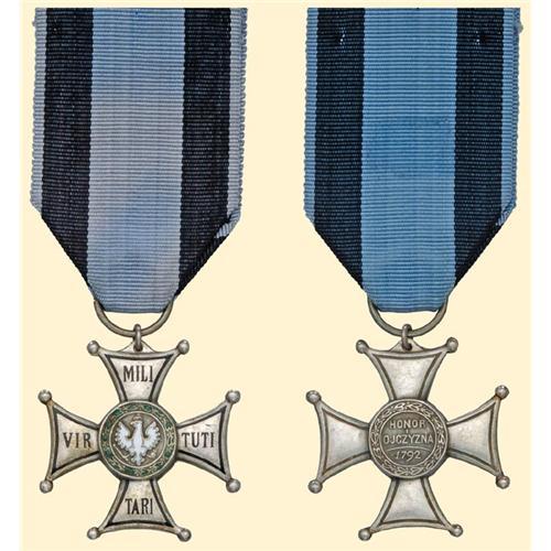 Silver Cross. Type 1918-1939. Breast badge in silvered bronze. Striking after WW II. New ribbon. Very