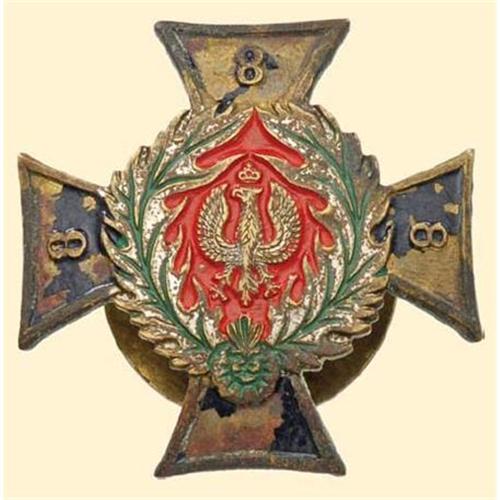 Tombak, averse lacquered (black, green, red, silver), one part construction, size 37,0 x 37,6 mm; screw on reverse, inscription on reverse "NIEMCY 1946" and numbered "1180". Cheap quality version with evident signs of age and wearing. These badges were produced for Polish exile troops in Germany after 1945! WES 707