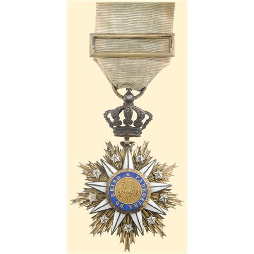 Knight`s Badge; breast badge, silver gilt, maker`s mark "Frederico Da Costa - Lisboa", superimposed parts enamelled, multipart construction, diameter ca. 46 mm; original suspension ring and ribbon. Beautifull quality and condition!