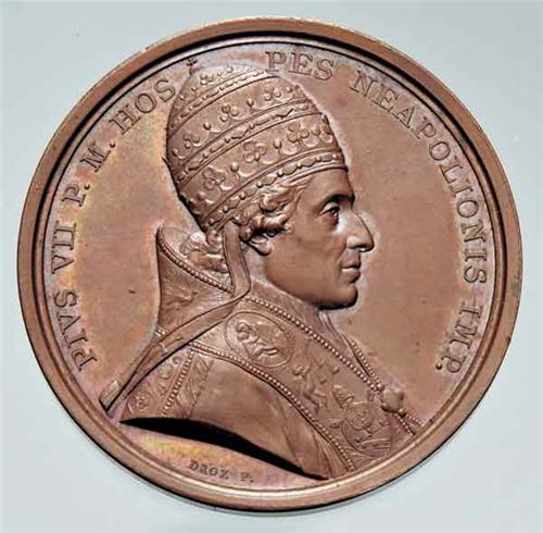 Medal - Pio VII - Cu - Pio VII (1800-1823) - Medaglia 1804 commemorativa dell' "ospitalità" concessa da napoleone al Potefice in occasione della sua incoronazione imperiale in Notre Dame - - - Opus Droz - Diametro mm. 40 - Peso gr. 34,78 - Conio originale, o di poco posteriore, e di ottima qualità
