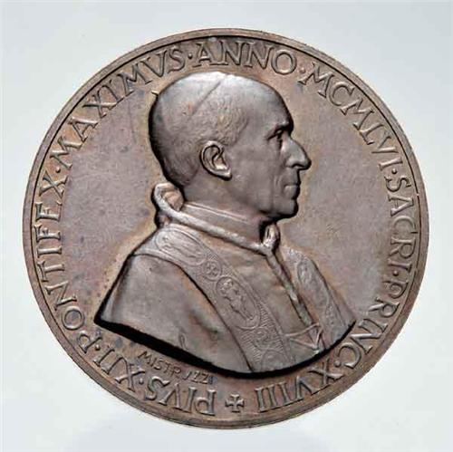 Medal - Pio XII - Cu - Pio XII (1922-1939) - Medaglia straordinaria 1956 anno XVIII per l'80° genetliaco del Papa - - - Opus A.Mistruzzi - Diametro mm. 44 - Peso gr. 33,72