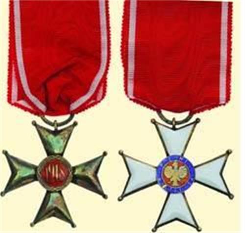 Knight's Cross - I. Type (1918); breast badge, silver gilt, obverse enamelled, reverse medallion "1918" enamelled, thin version, with grooved suspension ring and original ribbon with pin bar. Typical British "SPINK"-version! Small enamel damage in inscription scroll, some patina!
