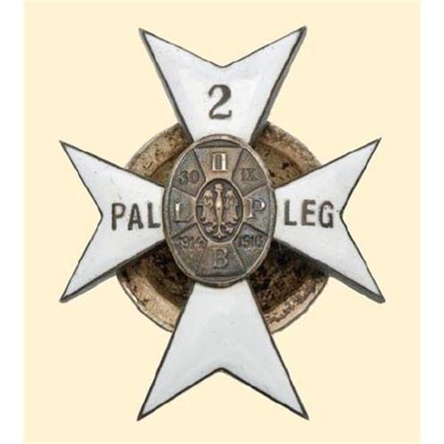 Silver patinated, averse enamelled, inscription "2 PAL LEG", superimposed thin "Pilsudski Brigade