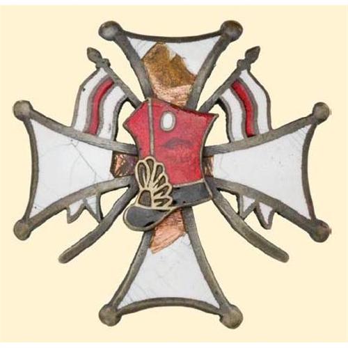 size: 38,7 x 38,6 mm; screw on reverse, nut is missing. Interesting design, but significant enamel