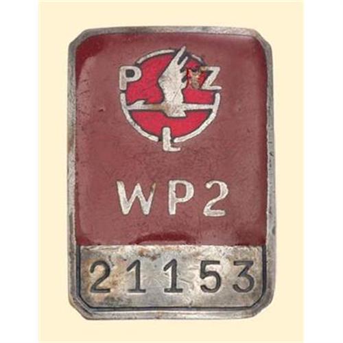 construction with profile-stamped reverse, size 27,2 x 39,3 mm; screw on reverse. Small enamel