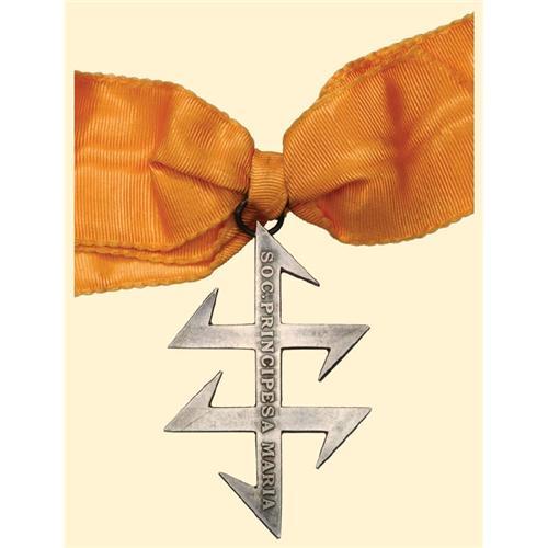 Breast Badge, bronze gilt, in the form of a repeated Queen Maria Cross, on averse "The Society Princess Maria" with ribbon of the Order "Queen Maria Cross" for ladies.