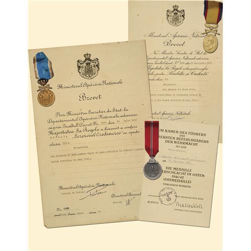 Breast Badge, bronze, with original ribbon. With original document from September 22nd, 1942, for the special participation in the war against Soviet Russia, signature of Minister of Defense and Division General Pantazie.