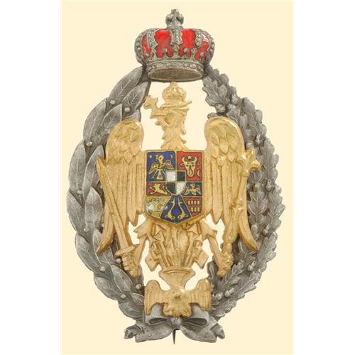 Badge for Graduates of the Military Academy, superimposed parts partially enamelled, multipart construction, the Romanian eagle gilt, with crown, very fine badge!