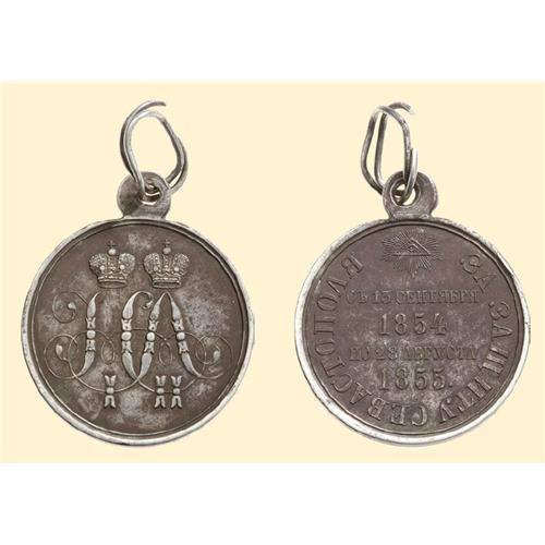 Battle of Sevastopol 1854-1855, silver medal with original loop, dark patina, signs of age. Rare.