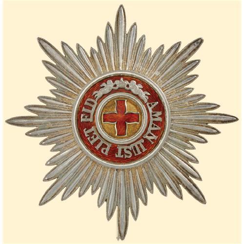 Breast Star, 1st Class; breast star, silver, corpus with plain rays medallion enamelled; reverse gilt, with tapered pin, old Russian hallmarks (84 St Petersburg), maker`s mark (KEIBEL) and Russian mark; flat version. Old Russian superb quality in mint condition!