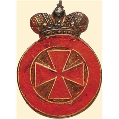 Badge 4th Class. Crowned medallion, bronze, averse partially covered with red sealing wax, reverse blank. Probably non finished post war exile production. Crown-variation!
