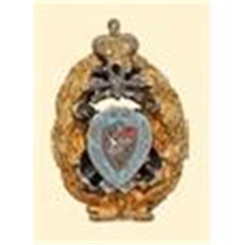 Miniature badge, silver gilt, centre shield enamelled, partially platinated; screw on reverse (with new nut). Superimposed parts are a bit loose. Mediocre quality. Werlich 144
