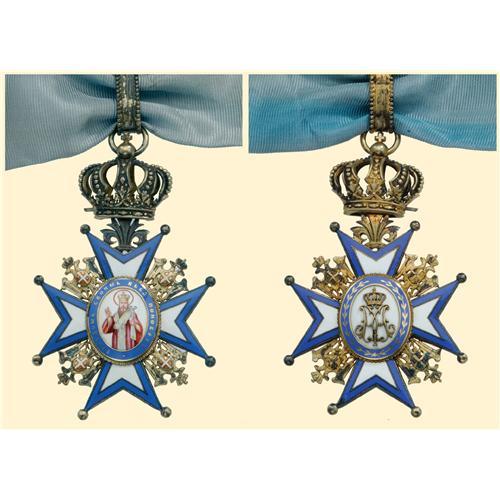 Commander`s Cross, neck badge 1st type, in silver-gilt and both sides enamelled, with minor enamel damage on one point; St. Sava with red coat, cipher "MI" on reverse, maker`s mark " F R " and Austrian silver hallmark in the suspension ring. Original suspension loop and incorect ribbon. Very fine and rare model!