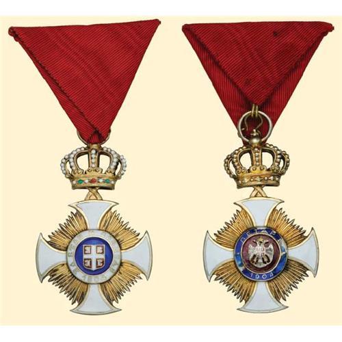 Officer's Badge of the Civil Division. In silver-gilt & enamel. Some enamel chipping on the reverse blue motto band, but no chipping elsewhere. With trifold ribbon. Very nice!