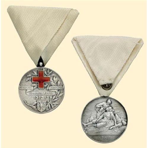 Medal of the Red-Cross in silver & enamel. With trifold ribbon. Hallmarked "990" at 6 o'clock, close to the rim on averse side. With white trifold ribbon.