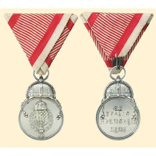 Royal Household Medal of King Peter II Karageorgevitch. Third class medal in silver with the crown. Manufactured by Huguenin of Le Locle in Switzerland. With correct ribbon. Extremely fine.